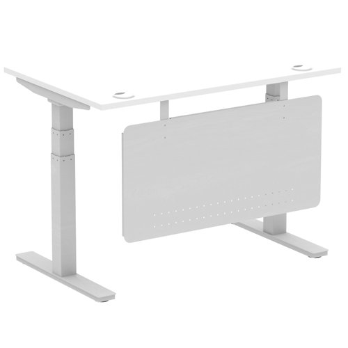 Air Modesty 1200 x 800mm Height Adjustable Office Desk White Top Cable Ports Silver Leg With Silver Steel Modesty Panel