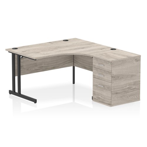 Impulse 1400mm Right Crescent Office Desk Black Top Black Cantilever Leg Workstation 600 Deep Desk High Pedestal